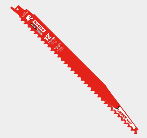 Diablo’s Demo Demon™ Carbide Teeth Reciprocating Saw Blades for Pruning and Clean Wood feature an aggressive carbide tooth geometry for an unmatched 50X longer cutting life, faster cuts and increased productivity in pruning and clean wood cutting applications. These industry-first carbide blades are designed with large gullets and a strengthened, oversized blade body for fast chip removal in extreme cutting applications. In addition, these radical blades feature Perma-SHIELD® non-stick coating to prevent gumming and friction for fast, effortless cuts in some of the toughest wood cutting scenarios.