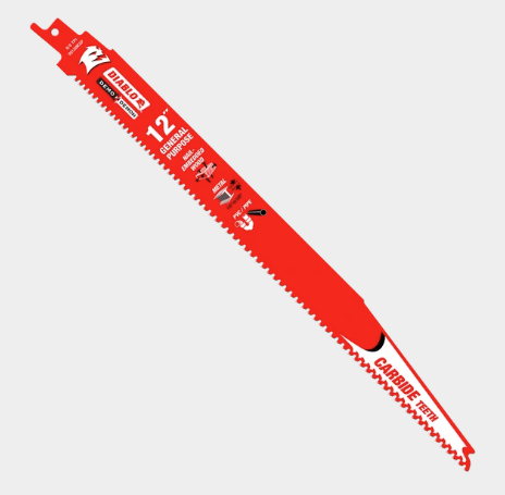 Diablo’s Demo Demon™ Carbide Teeth Reciprocating Saw Blades for General Purpose Cuts are the first blades on the market specifically designed for extreme performance in both wood and metal. These blades include exclusive features that deliver unmatched 50X longer life in both wood and metal cutting applications. With an oversized blade body, patented Variable tooth design, and Perma-SHIELD® non-stick coating, this blade is ideal for cutting nail-embedded wood and demolition thick metal applications with a 1/8″-3/8″ thickness.