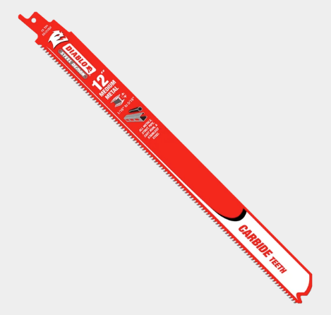 Diablo’s Steel Demon™ Carbide Teeth Reciprocating Saw Blades for Medium Metal deliver 50X longer cutting life and cleaner finishes in strut, pipe, stainless steel and all other metals ranging in 1/16″ to 5/16″ thickness. High performance TiCo™ hi-density carbide teeth enable longlasting durability. An oversized blade body provides straighter cuts with little vibration and chatter when cutting medium metal. An enhanced tip-to-blade connection allows for extreme impact resistance. Perma-SHIELD® non-stick coating helps the blade resist heat and friction buildup, helping prevent gumming and corrosion.