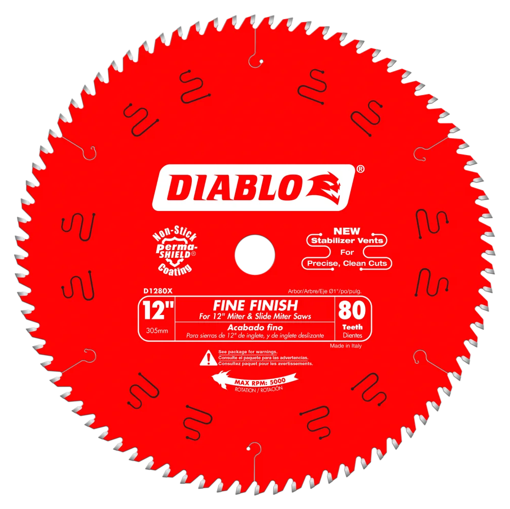 Fine Finish blades let trim crews get the most out of sliding or “chop†style miter saws, as well as jobsite or workshop table saws. The special cutting geometry and high tooth count produce extremely smooth cuts while minimizing “grabbing†or blowout. Diablo’s particular blade is the ideal choice for trim carpenters because it leaves a smooth surface that requires little to no sanding. It’s ideal for crosscutting oak, pine, melamine, plywood, and molding.