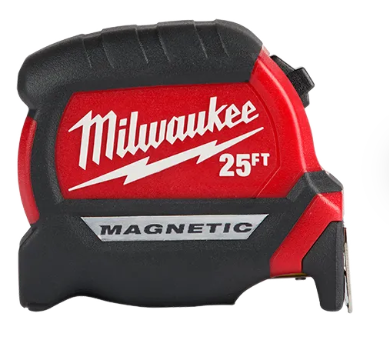 Our 35ft Compact Wide Blade Magnetic Tape Measure has up to 15′ of reach and a magnet that easily attaches to EMT & steel studs. The tape is wear and impact-resistant with nylon blade protection and an additional anti-tear coating on the first 6” of the blade, reducing tape tear. Built to withstand the jobsite, the compact measuring tapes are constructed with a 5-point reinforced frame for impact resistance.