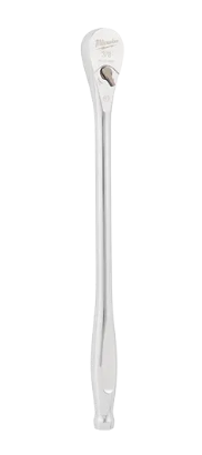 Our 3/8″ Drive 12″ Ratchet offers 4° of arc swing, allowing access to work in tighter spaces. The extended handle length provides you with increased leverage for stubborn nuts and bolts with a slim profile design and a flush directional lever for better accessibility. The all-chrome finish provides the MILWAUKEE® extended reach ratchet with easy cleaning. This ratchet is backed by our Mechanics Hand Tools Lifetime Guarantee.
