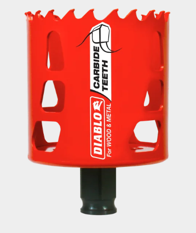 Diablo introduces Carbide Teeth Hole Saws, the first hole saws on the market to cut both wood and metal (wood, nail-embedded wood, plastic, aluminum, metal, cast iron, stainless steel and metal). Delivering up to 50X longer cutting life than bi-metal, these new carbide teeth hole saws offer faster cutting performance and increased productivity.
