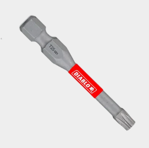 Diablo’s driver bit range of Torx bits delivers maximum performance, extreme durability and up to 50x longer life when installing and removing fasteners. An optimized tip design provides a strong, precise grip that reduces wear, stripping and slippage. Torque Resistant Design absorbs torque for less stress at the tip when tightening and removing nuts and screws. This range is Impact Strong™, delivering increased shank stability and durability in cordless and corded impact and drill drivers.