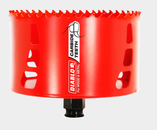 Diablo introduces Carbide Teeth Hole Saws, the first hole saws on the market to cut both wood and metal (wood, nail-embedded wood, plastic, aluminum, metal, cast iron, stainless steel and metal). Delivering up to 50X longer cutting life than bi-metal, these new carbide teeth hole saws offer faster cutting performance and increased productivity.
