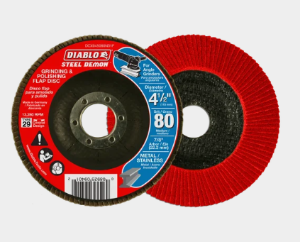 Diablo’s Steel Demon™ flap discs feature a premium zirconium grain blend for up to 10X faster material removal when compared to standard grinding wheels. The flap discs’ special flap design offers flexibility and provides for a cushioned grinding effect. Diablo’s high performance flap discs combine two steps in one by simultaneously grinding and polishing.