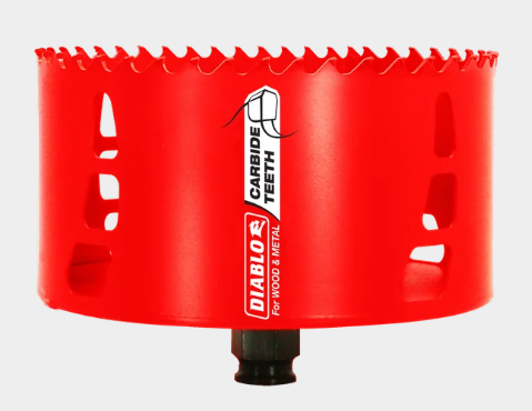 Diablo introduces Carbide Teeth Hole Saws, the first hole saws on the market to cut both wood and metal (wood, nail-embedded wood, plastic, aluminum, metal, cast iron, stainless steel and metal). Delivering up to 50X longer cutting life than bi-metal, these new carbide teeth hole saws offer faster cutting performance and increased productivity.