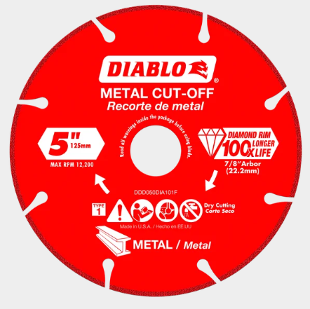 Diablo’s innovative metal cut-off discs deliver extreme durability, minimal downtime and increased productivity. These diamond rimmed wheels deliver 100X longer cutting life versus a standard bonded cut-off disc in some of the most intense metal cutting situations. The disc’s long-lasting durability maximizes cutting even in extreme applications such as rebar, angle iron, cast iron and steel bar. Diablo’s diamond metal cut-off discs not only provide long lasting cutting life, durability and control, but they also allow for a safer cutting experience.
