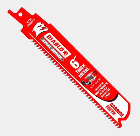 Diablo’s Steel Demon™ Carbide Teeth Reciprocating Saw Blades for Thick Metal are the first carbide-tipped blades designed for extreme metal cutting; including high strength alloys, cast iron, and stainless steel. High performance TiCo Hi-Density carbide blade delivers an unmatched up to 50X longer cutting compared to standard bi-metal blades in extreme metal cutting applications between 3/16” to 9/16”. An oversized blade body helps produce straighter cuts with less vibration and chatter, while an enhanced carbide tip-to-blade connection provides extreme impact resistance. Diablo’s Perma-SHIELD® non-stick coating helps each blade resist heat and prevent gumming and corrosion.