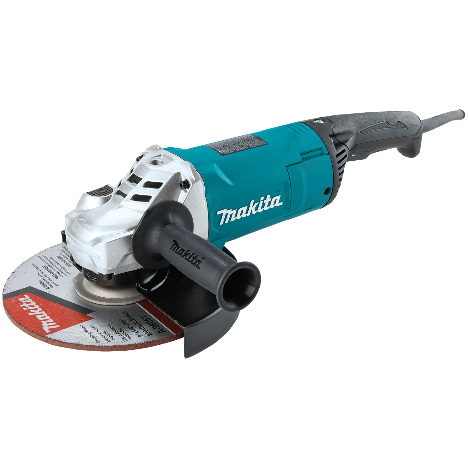 The Makita 9″ Angle Grinder with Lock-On Switch (GA9081) features a powerful 15 AMP motor that delivers 6,600 RPM for faster material removal. The GA9081 features a redesigned motor with greater armature stability and larger commutator bars for 3 times longer life compared to the previous model. The Angle Grinder features a power switch with both lock-off and lock-on capabilities. The trigger switch requires two actions to start the grinder.
