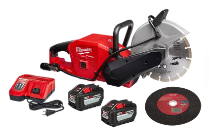 Our M18 FUEL™ 9″ Cut-Off Saw w/ ONE KEY™ Kit is an extremely versatile solution for cutting a large variety of materials. The cordless cut off saw runs on our MILWAUKEE® M18™ REDLITHIUM™ batteries instead of using gas like most traditional cut off saws. The cut off saw delivers you with the Power To Cut Reinforced Concrete as well as a large variety of other metal and masonry materials. It delivers this performance while still being Up To 50% Lighter Than Gas demo saws that are in the market today. By utilizing our M18™ REDLITHIUM™ HIGH OUTPUT™ HD12.0 Battery, the saw also ensures you will experience No Gas Headaches. The concrete cutting saw produces no fumes so you can use it indoors. It also starts up instantly, eliminates your need to mix gas and oil, and there is no gas engine maintenance. The M18™ battery will also work on any of our other 200+ M18™ solutions. The M18 FUEL™ 9″ Cut-Off Saw also has ONE-KEY™ integrated so you can wirelessly connect the tool with your smartphone to track and manage the tool. In addition to the tool, this kit includes two M18™ REDLITHIUM™ HIGH OUTPUT™ HD12.0 Batteries and an M18™/M12™ Rapid Charger.
