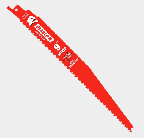 Diablo’s Bi-Metal Reciprocating Saw Blades for Nail-Embedded Wood are specifically designed for maximum performance in all rough-in applications. These high-performance blades feature bi-metal technology that delivers up to 5X longer life compared to standard blades and a Full Contact Arched Edge Design that delivers faster cuts in fewer passes. Diablo’s patented variable tooth technology provides cleaner cuts with less vibration, while Perma-SHIELD non-stick coating helps protect the blade from heat buildup, resulting in less gumming and corrosion. A unique tip design helps the blade with faster and easier plunging in extreme materials.