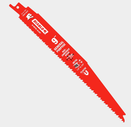 Diablo’s Bi-Metal Reciprocating Saw Blades for General Purpose Cuts are specifically designed for maximum performance in wood, nail-embedded wood, metal and plastic applications. These high-performance blades feature bi-metal technology that delivers up to 5X longer life compared to standard blades on the market. Diablo’s patented variable tooth technology provides faster cuts with less vibration.