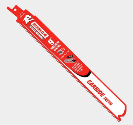 Diablo’s Steel Demon™ Carbide Teeth Reciprocating Saw Blades for Medium Metal are the first carbide teeth blades on the market designed specifically for cutting medium metals and high strength alloys. This high performance carbide blade delivers an unmatched up to 50X longer cutting life than standard bi-metal blades in medium metal cutting applications. The blade’s 10 TPI provides cleaner and smoother cuts on material between 1/16″ to 5/16″. An oversized 1″ blade body height produces straighter cuts with less vibration.