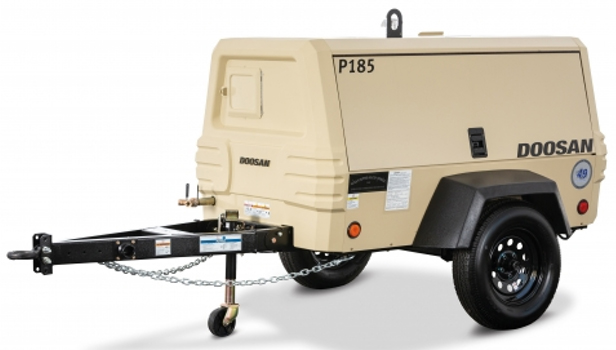 The updated P185WDO air compressor delivers 185 cfm at 100 psi. It has a Tier 4-F Doosan D24 engine and a Doosan DSN100 aired. The unit runs 12 hours at 100 percent load. The P185 has curbside discharge valves, all filters are readily accessible and clearly marked, and the separated oil tank has a new fill and sight gauge.