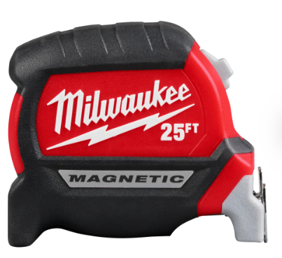 Our 25ft Electrician’s Compact Wide Blade Magnetic Tape Measure has a magnetic, enhanced top and side hook that easily attaches to EMT, conduit, & steel studs. The tape includes electrician-specific reference guides, including a Conduit Bending Multiplier Table & 3 Phase Layout Table. The tape blade is white for better visibility in low-light areas and is wear-resistant with lacquered blade protection and an anti-tear coating on the first 6″ of the blade. Built to withstand the jobsite, the compact measuring tape is impact-resistant with a 5-point reinforced frame. The tape measures feature double-sided printing with a blueprint scale allowing users to read and convert measurements easily. The Compact Wide Blade Magnetic Tape is designed to increase productivity for electricians and is covered by a limited lifetime warranty.