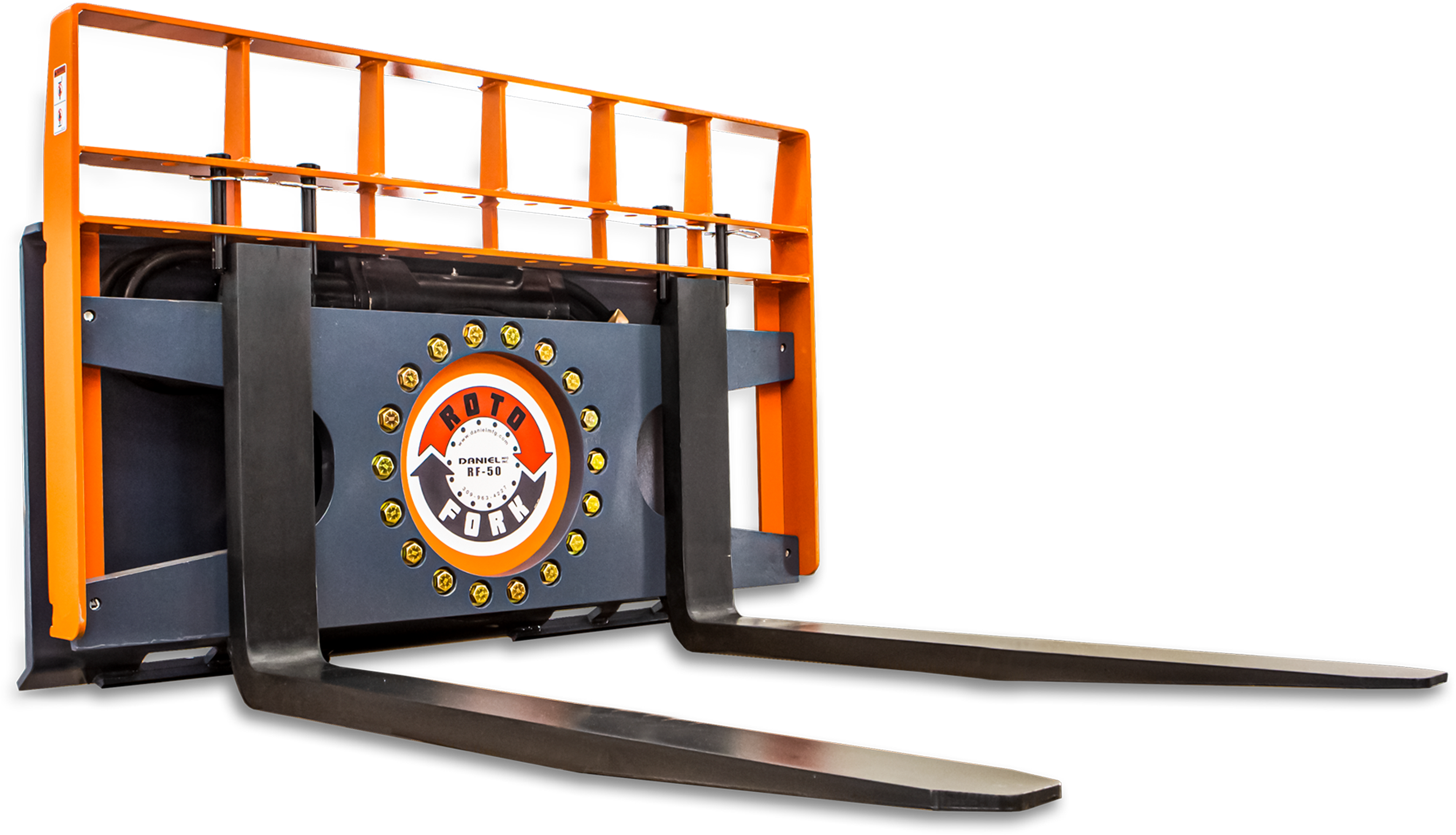 The Roto Fork RF-50 is a heavy-duty rotating fork system that offers continuous bi-directional rotation with a 5,000-pound load capacity. The hydraulic worm drive slewing ring provides precision control and self-locking positioning as well as a slim profile to maintain the load center close to the machine. Robust fork positioners allow multiple location choices with easy-to-use pin retainers. The low-profile carriage rack grants high visibility and ease of access for the operator. Pair this with our Xtreme Duty Demolition Carts for efficient material handling. Great for demolition and landscaping applications!