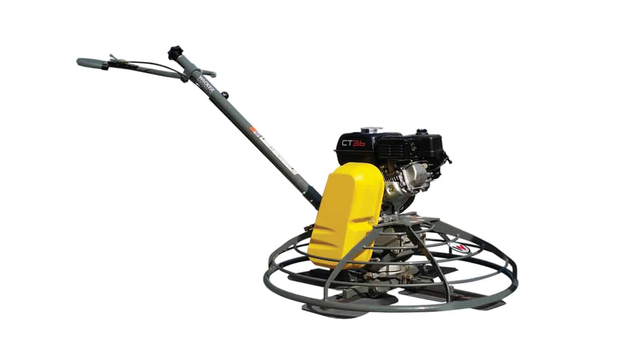 Gas-powered 3″ walk-behind trowel w/ combo blades. Each walk-behind trowel has been retrofitted with an exhaust gas purifier muffler to reduce harmful exhaust emissions.