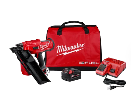 Our M18 FUEL™ 30 Degree Framing Nailer Kit sets the new standard for cordless framing nailers. By leveraging our nitrogen spring mechanism, POWERSTATE™ brushless motor, and REDLINK™ Intelligence, this nailer provides you with pneumatic performance and the convenience and freedom of cordless power. Delivering the power to sink full round head nails into dense engineered lumbers, this framing nailer allows you to tackle even the most demanding framing applications. To keep you productive and efficient throughout the day, the framing gun fires 3 nails per second with zero ramp-up time, meaning a nail is fired as soon as you pull the trigger. Additionally, the cordless framing nailer operates using only our REDLITHIUM™ Batteries and sealed compressed nitrogen to drive each nail, completely eliminating the cost of gas cartridges and maintenance associated with competitors’ nailers. The M18 FUEL™ 30 Degree Framing Nailer delivers the pneumatic performance and durability that professional carpenters and remodelers expect, without the hassle of a compressor and hose or gas cartridge. In addition to the framing nailer, this kit includes one M18™ REDLITHIUM™ XC5.0 battery pack, an M18™ & M12™ Multi-Voltage Charger, a rafter hook, non-marring tip, and a contractor bag.