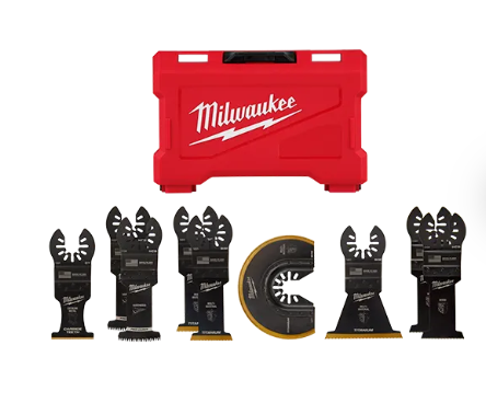 Our OPEN-LOK™ Multi-Tool Blade Variety Kit 9PC provides you with an assortment of blades for multi-material, hardwood and clean wood cutting applications. The set includes a Carbide Teeth metal blade that lasts up to 50X longer than standard bi-metal blades and can be used in a wide range of metal materials while maintaining longer blade life such as; screws, bolts, nails, and more. TITANIUM CHARGED™ Bi-Metal blades have an optimized titanium blend for maximum wear-resistance and up to 15x longer life vs. high carbon steel (HCS) blades. These bi-metal multi-tool blades are ideal for wood with nails, PVC, and drywall. The Triple-Ground Japanese Tooth hardwood blades deliver up to 2X faster cuts than the previous MILWAUKEE® HCS blades and features a PRO-CURVE™ cutting edge for greater control. The Japanese Tooth blades are ideal for fast, clean cuts in hardwood and can also be used in clean wood, PVC, and drywall. The set also includes high carbon steel (HCS) blades designed with aggressive, edge-ground teeth for fast wood cutting. These blades feature a reinforced Universal Fit OPEN-LOK™ anchor for better strength & control and allow for quick blade changes across 100+ multi-tools. Not compatible with Starlock tools. The set is organized in a hard case for storage. MILWAUKEE® oscillating multi-tool blades are designed and made in the USA with global materials.