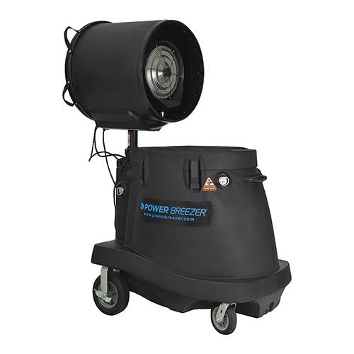Power Breezer designed for spot cooling spaces where air conditioning is impractical. 100 Gallon water tank, Height: 5″ 4″ Length: 2″ 4″ Width: 3″ 9″. Weight: 176 lbs.