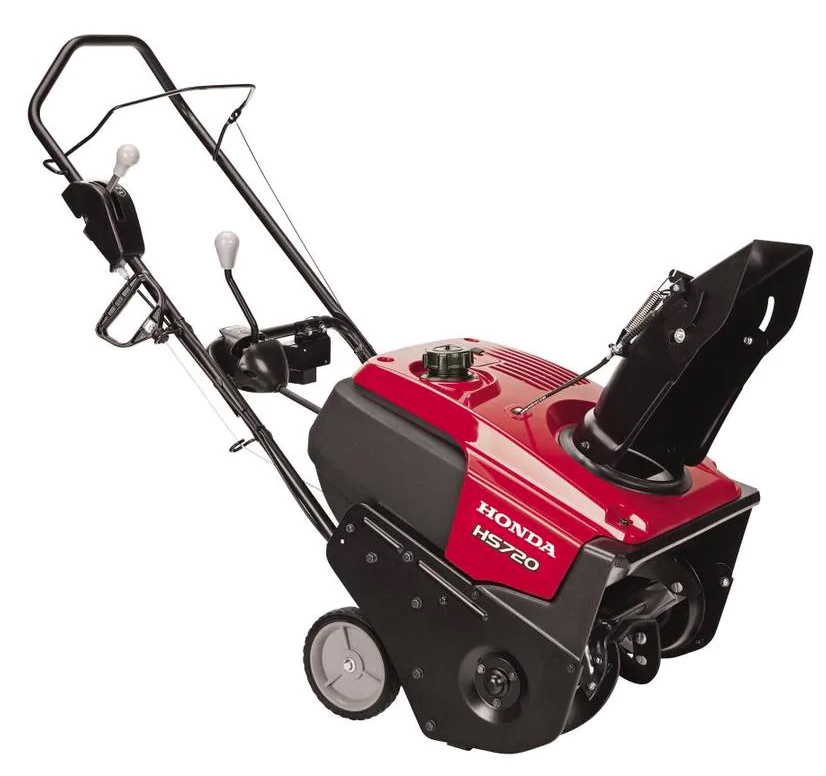 Single-stage snow thrower clears 20″ wide up to 1800 LBS./MIN. Throws snow 33 feet.