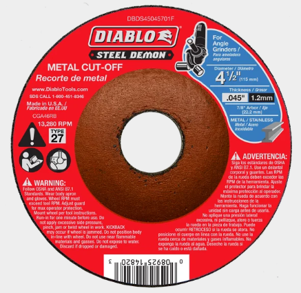 Diablo’s Steel Demon™ metal cut-off discs deliver industrial performance, increased productivity and longer cutting life. Featuring a premium ceramic blend that produces quick cuts that deliver up to 6X longer life. A fully reinforced depressed center enables the disc to withstand heavy-duty metal applications such as heavy stock removal or blending. These discs are ideal for flush cuts and working in hard-to-reach areas.