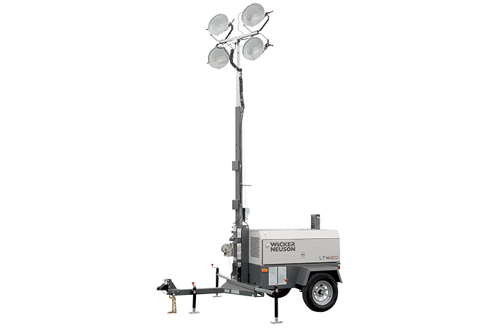 Tow behind horizontal mast light tower. Has a total of 4 light heads with metal halide lamps @ 1000 watts each. Deployed footprint Width: 112″ x Length: 127″